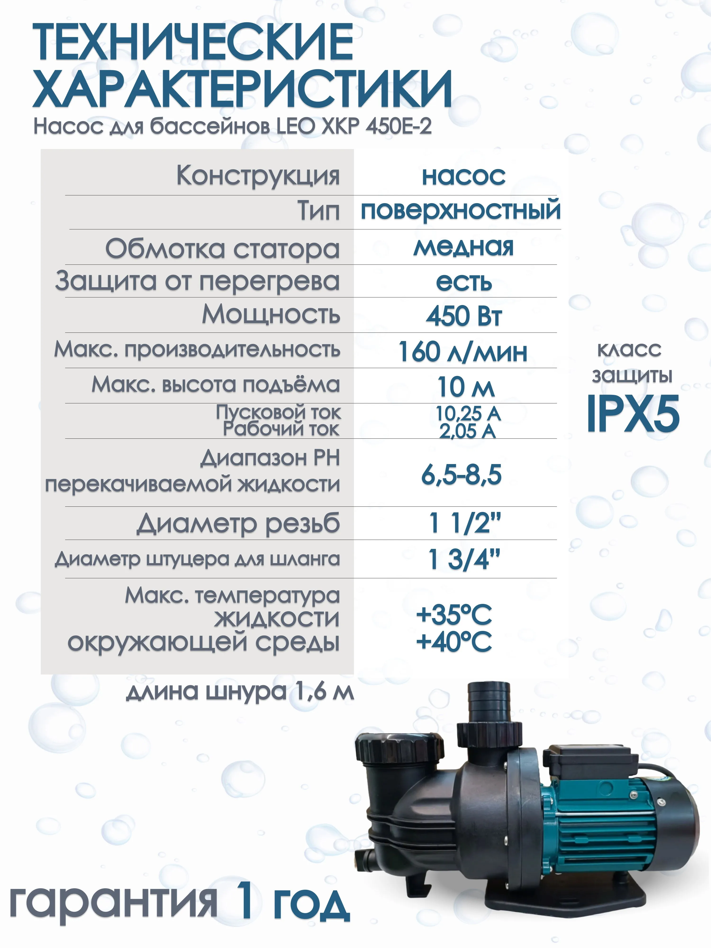 Насос для бассейна LEO XKP450-2 | Купить Насос для бассейна LEO XKP450-2 с доставкой