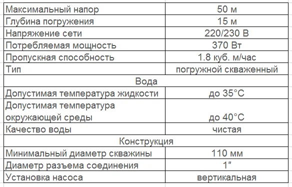 - Для подачи воды из скважины, в которой максимальный объем песка не более 0,01%;