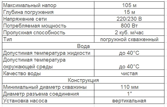 - Для подачи воды из скважины, в которой максимальный объем песка не более 0,01%;
