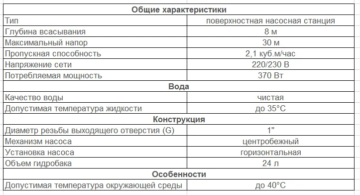 - максимальная высота всасывания — 8 м;