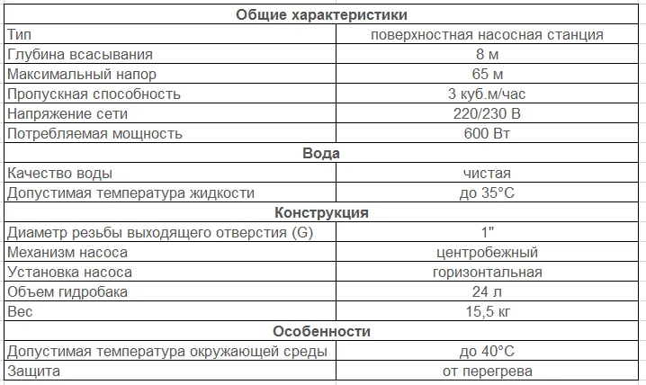 - максимальная высота всасывания — 8 м;