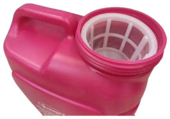 Распрыскиватель изготовлен из прочного пластика и устойчив к химическим веществам, что делает его надежным инвентарем. Широкая горловина позволяет заполнять бачок без проливания. Горловина снабжена съемной сеткой, которая задерживает мусор и не растворенные частицы, предотвращая засорение форсунок
