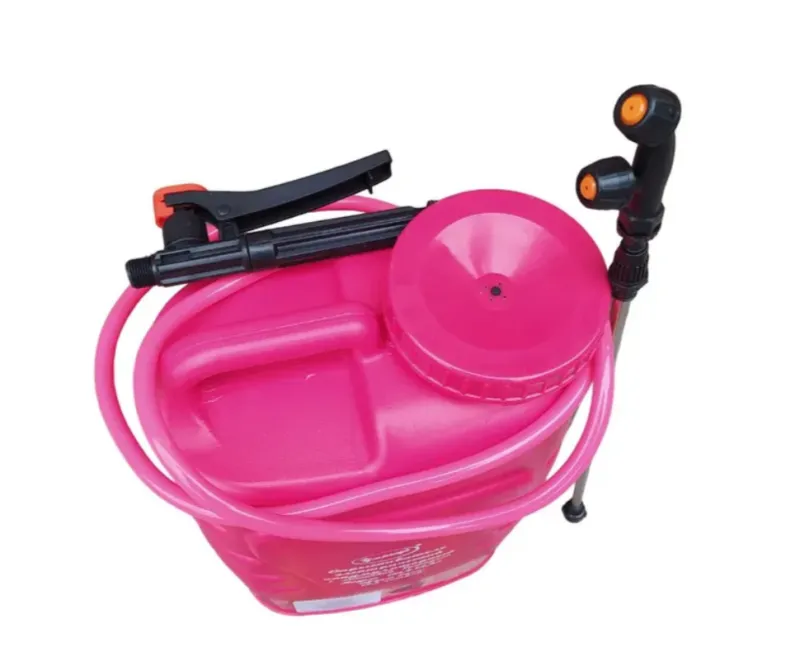 Благодаря ранцевой конструкции вес распределяется равномерно и не сильно утомляет. Крупный диаметр горловины бака. В неё удобно наливать жидкость даже без воронки. На корпусе есть рукоятка. Пригодится, чтобы перенести садовый опрыскиватель вручную.