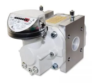 Принцип работы: счетчик газа ротационный RVG работает по принципу вытеснения строго определенного объема газа вращающимися роторами. Объем вытисненного газа определяется объемом измерительной камеры счетчика, образованной внутренней поверхностью корпуса и поверхностями двух синхронно вращающихся в противоположных направлениях роторов. Вращательное движение роторов через редуктор и магнитную муфту передается на 8-ми разрядный счетный механизм, который регистрирует число оборотов роторов, а следовательно и объем газа, прошедший через счетчик.