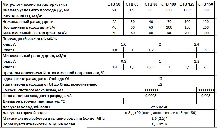 Счетчики выпускаются следующих моделей:- СТВ- (Ду) Г - для горячей воды;