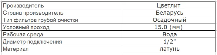Фильтр осадочный предназначен для предварительной очистки питьевой воды или воды горячего водоснабжения и рекомендуется для совместной установки со счётчиками воды.Технические характеристики