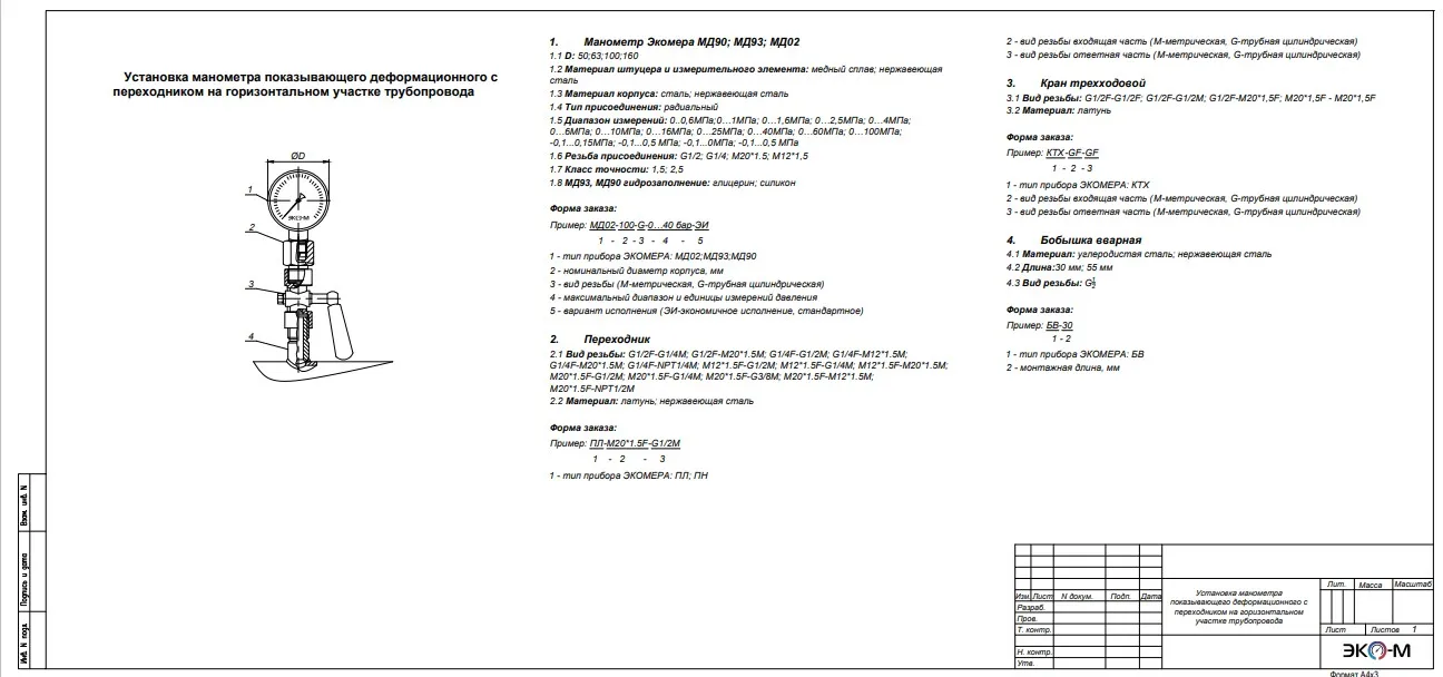 Манометр Экомера МД90; МД93; МД02