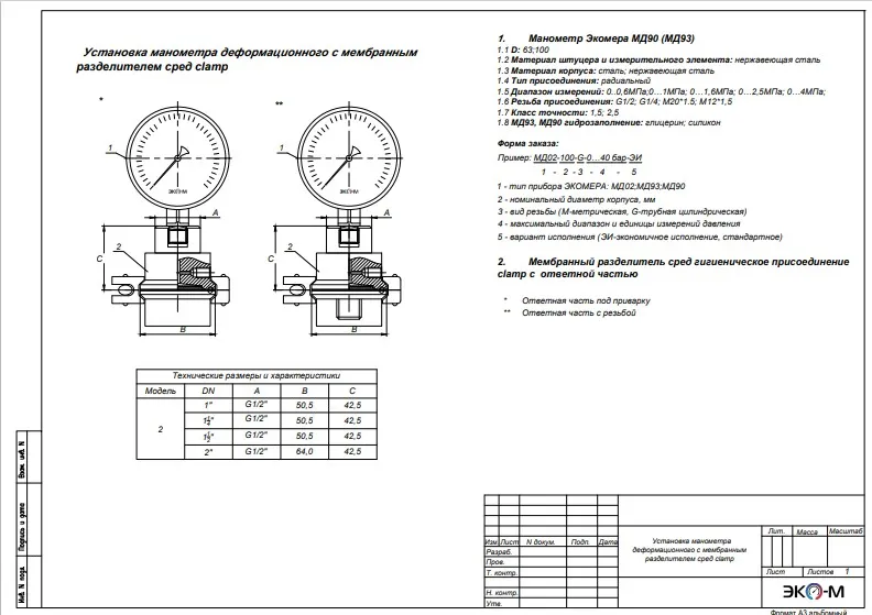 Манометр Экомера МД90 (МД93)